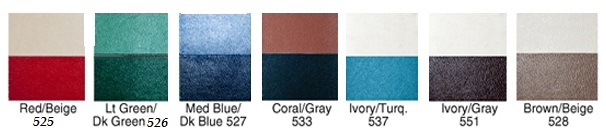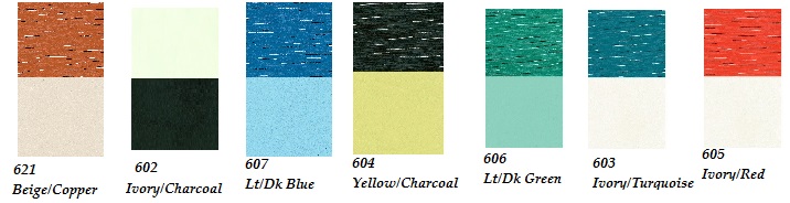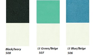 Beige#8112 Gray#8110 Med Green#8109 Coral#7411 Ivory #8107 Black vinyl#8120 Black#8140 Black Pref.#8120P Turquoise#8111 White Pref.#8120W |